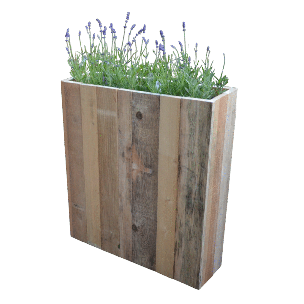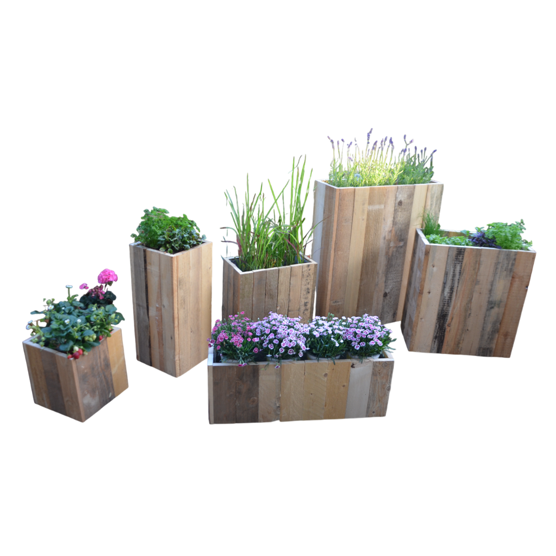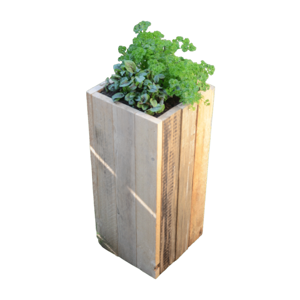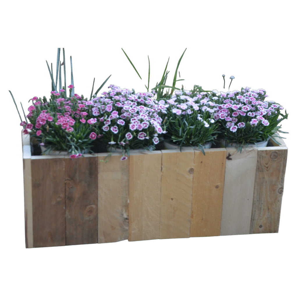 We halen gebruikte ‘wegwerp’ paletten op en verzagen die tot mooie plantenbakken. Dit doen we in onze werkplaats in België. Hier is geen extra boom voor gekapt, geen tropisch hardhout voor gesneuveld.
